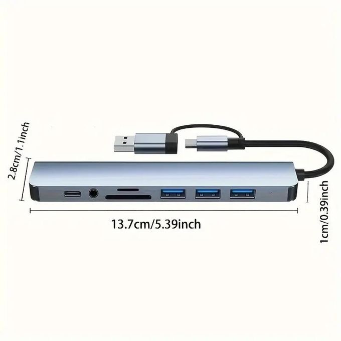 Hub USB 8-en-1 avec prise audio, adaptateur multi-ports, alimenté par USB, tension de 5V, compatible tablettes Macbook Pro