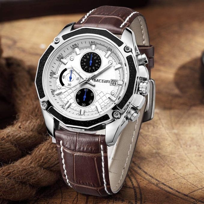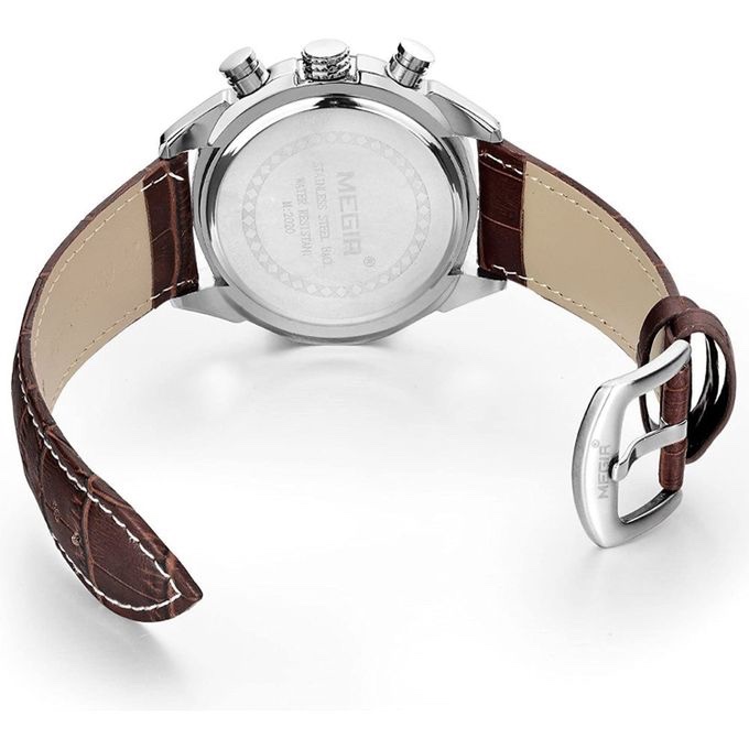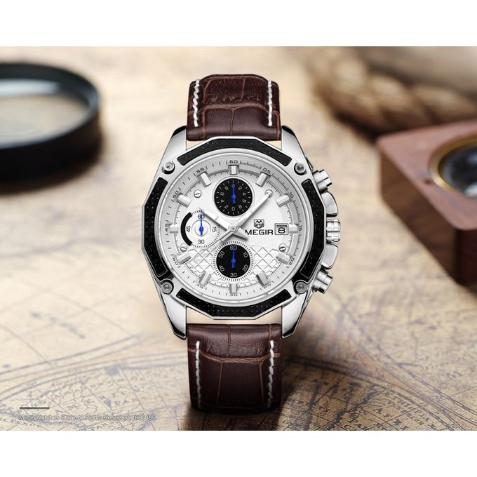 Megir Montre Megir de Luxe en Cuir marron étanche Sport chronographe pour homme